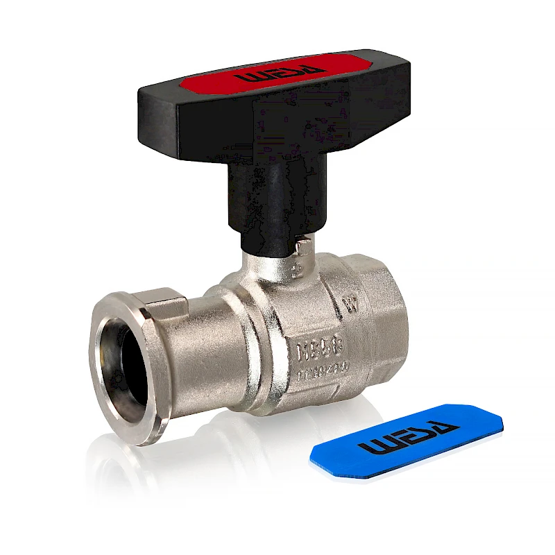 Geh./Kugel/Dicht. CW614N/CW614N/PTFE/FKM, T-Griff Nylon schwarz mit ABS-Clip (rot-blau), ohne Schwerkraftbremse, voller Durchgang