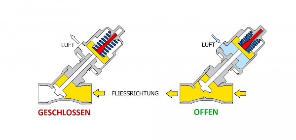 Geh./Antr./Dicht. 1.4408/1.4308/ PTFE/FKM, Federkraft geschlossen in Fliessrichtung, einfachwirkend, voller Durchgang, 1-teilig