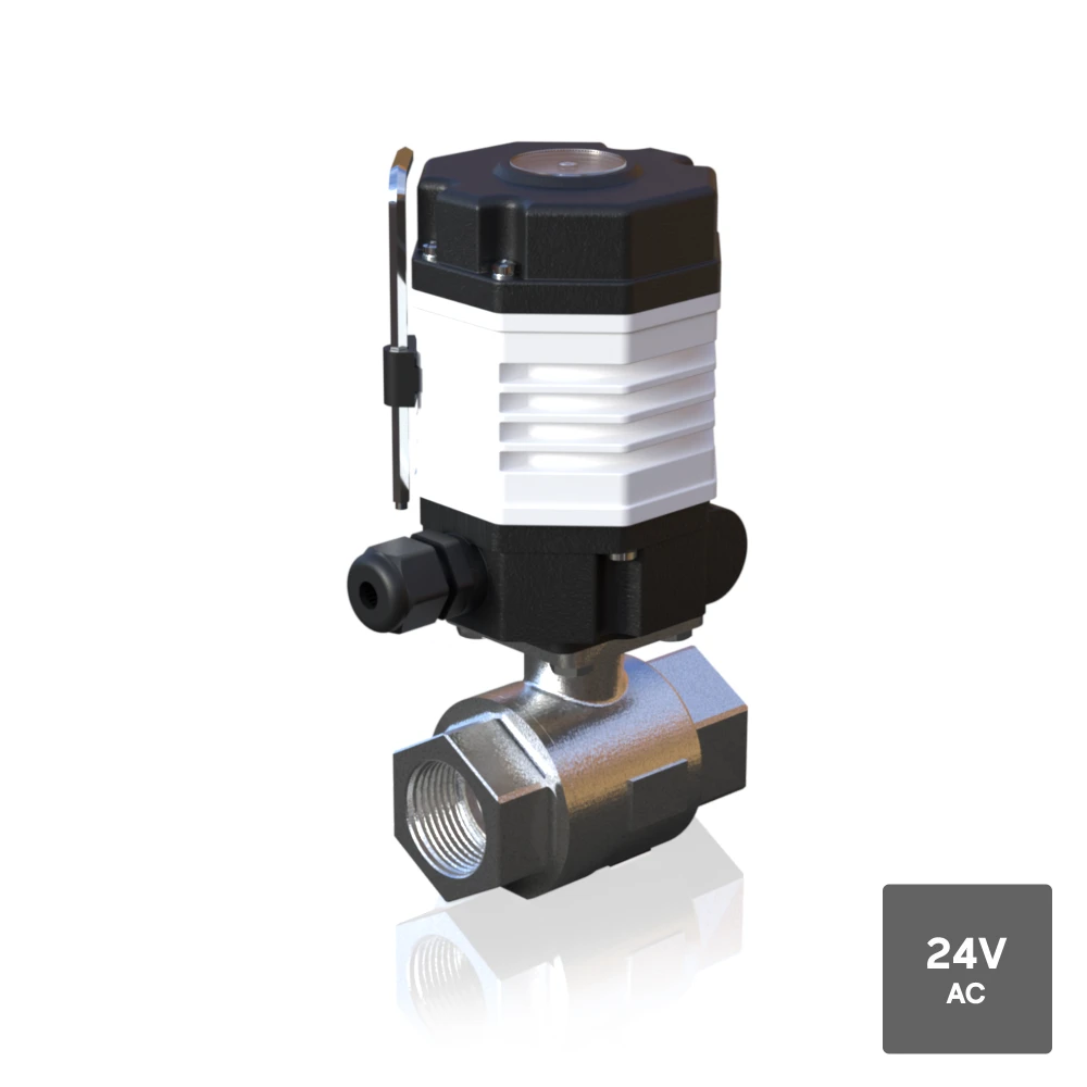 Geh./Kugel/Dicht. 1.4401/1.4401/ PTFE/FKM, elektr. Antrieb AE03 24V AC, Drehmoment 18 Nm Stellzeit 15 Sek. 90°