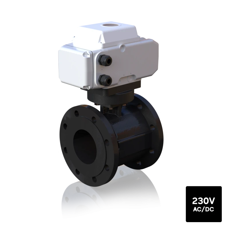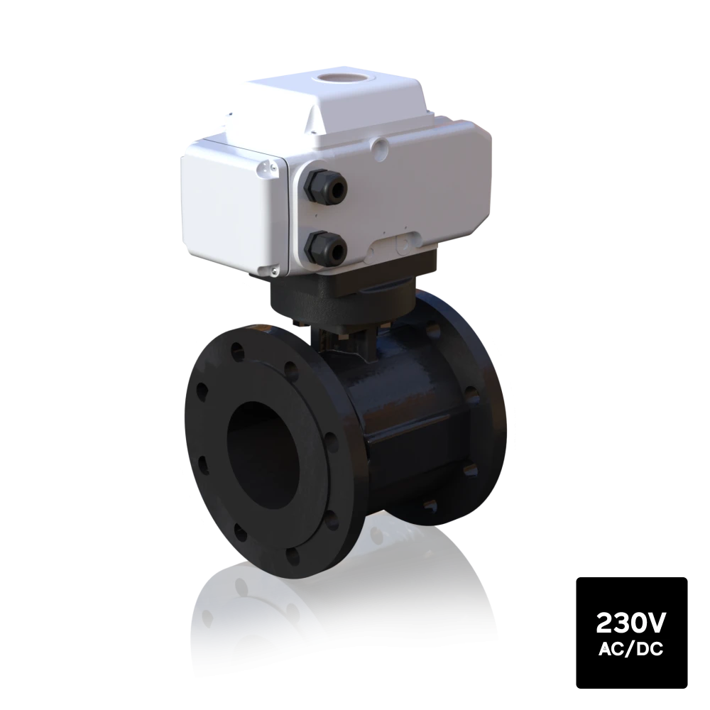 Geh./Kugel/Dicht. GG25/CW608N/ PTFE/HNBR, elektr. Antrieb AE 230V AC, Drehmoment 30-200 Nm Stellzeit 12-30 Sek. 90°