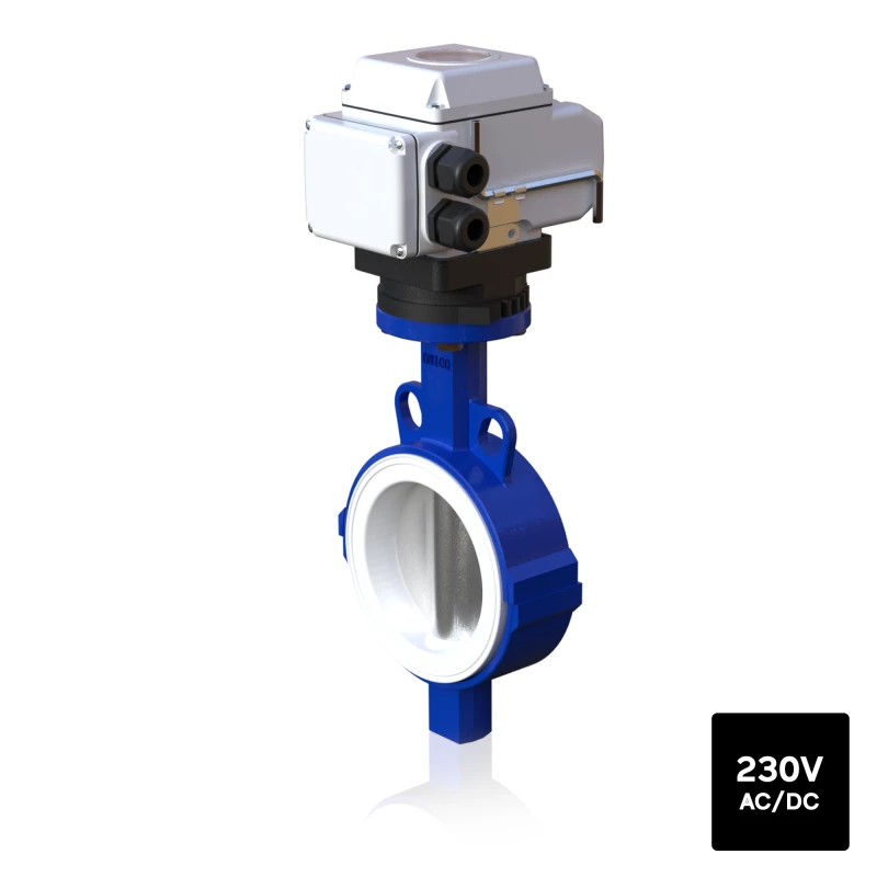 Geh./Scheibe/Dicht. GGG40/1.4408/ PTFE, elektr. Antrieb AE09 230V AC, Drehmoment 100 Nm Stellzeit 30 Sek. 90°