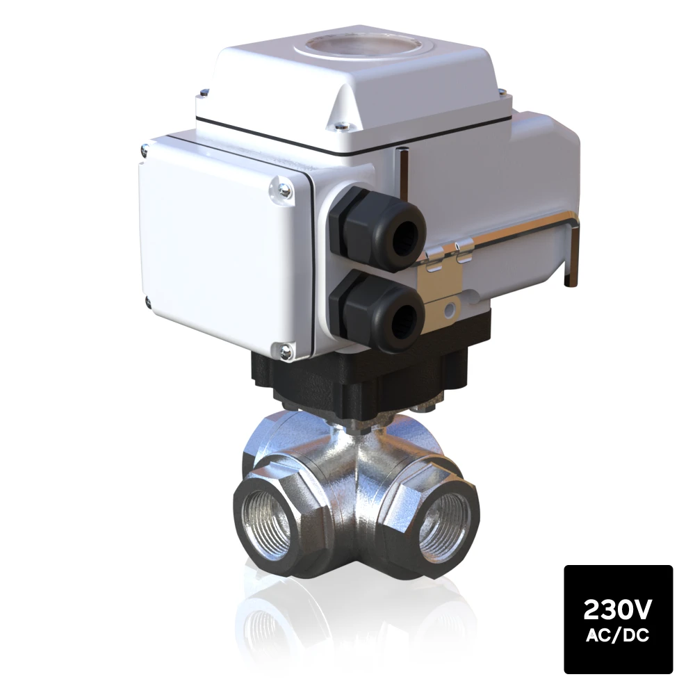 Geh./Kugel/Dicht. 1.4408/1.4401/ R-PTFE/PTFE/FKM, elektr. Antrieb AE04 230V AC, Drehmoment 30 Nm Stellzeit 12 Sek. 90°