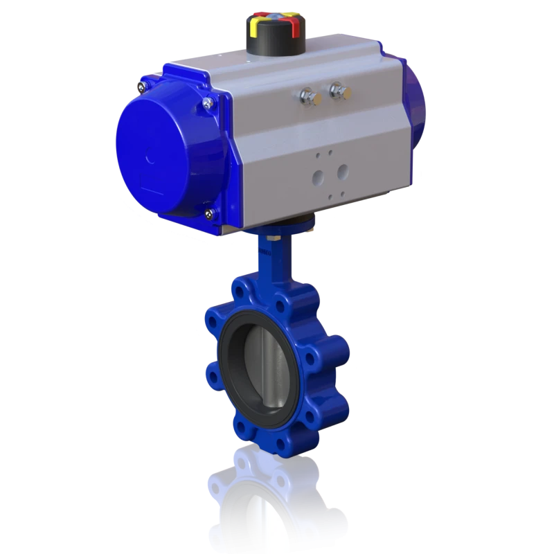 Geh./Scheibe/Dicht. GGG40/1.4408/ FKM, pneum. Antrieb PD05 doppeltwirkend, Drehmoment 100 Nm/Steuerdruck 6 bar