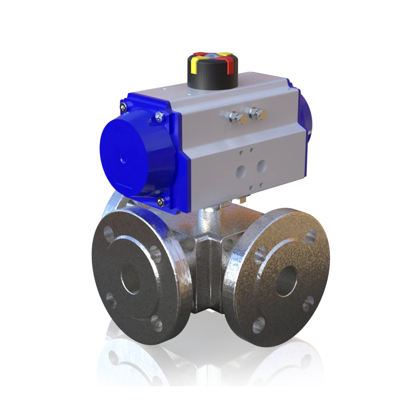 Geh./Kugel/Dicht. 1.4408/1.4401/R-PTFE/PTFE/FKM, pneum. Antrieb PD03 doppeltwirkend, Drehmoment 44 Nm/Steuerdruck 6 bar, ATEX 2014/34/EU, SIL