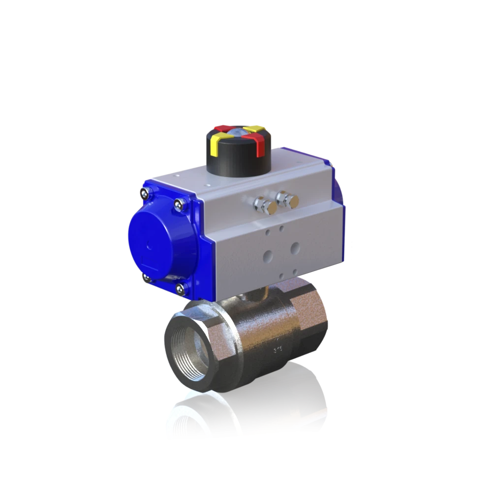 Geh./Kugel/Dicht. 1.4408/1.4401/ R-PTFE/PTFE/FKM, pneum. Antrieb PD03 doppeltwirkend, Drehmoment 44 Nm/Steuerdruck 6 bar, ATEX 2014/34/EU