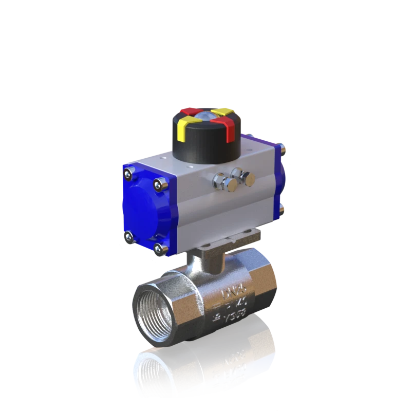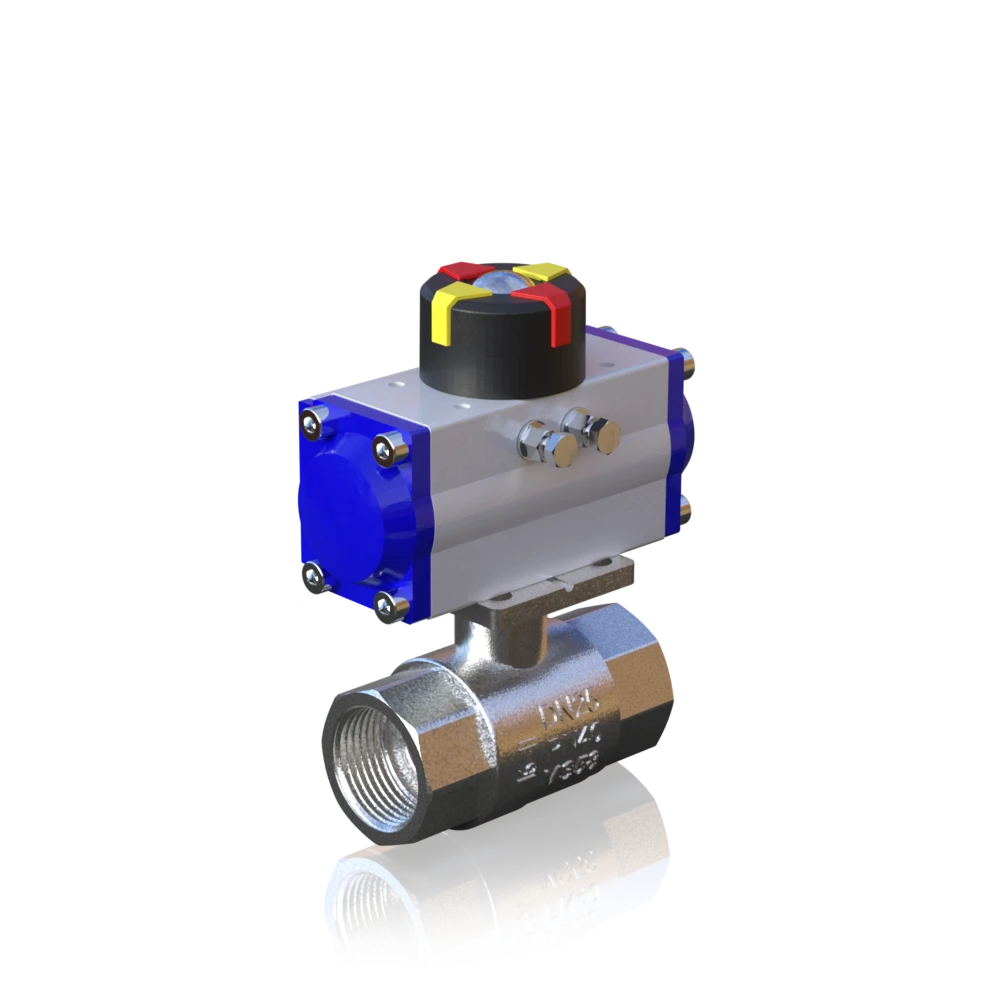 Geh./Kugel/Dicht. CW617N/CW617N/ PTFE/FKM, pneum. Antrieb PE03 einfachwirkend, Steuerdruck 6 bar