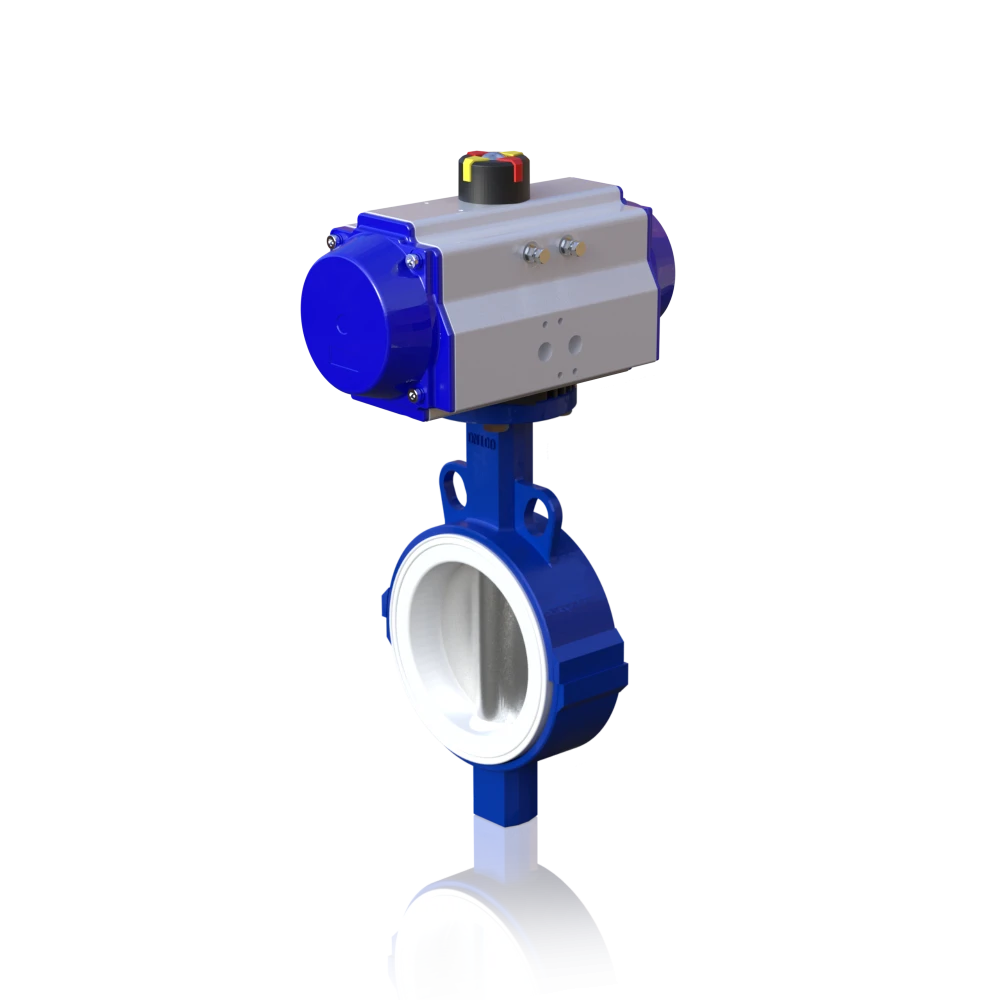 Geh./Scheibe/Dicht. GGG40/1.4408/ PTFE, pneum. Antrieb PE06 einfachwirkend, Steuerdruck 6 bar
